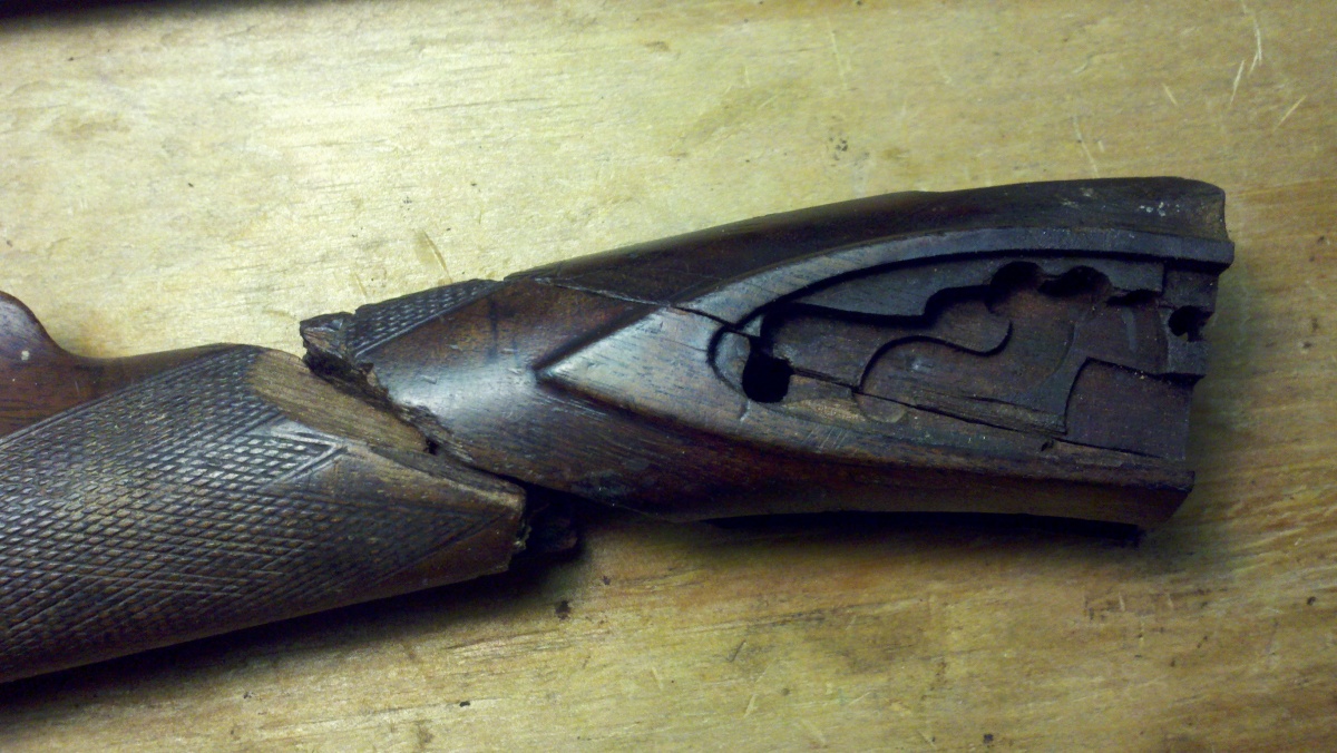 I'm wondering if some expert stock repair person wouldn't be able fix that break and make it whole again, even splicing in a piece of wood where the extended tang was inletted. Mark Larson comes to mind as being able to make different pieces of wood look like one piece. I have no idea if all this repair work is possible or what the cost to fix would be compared to a new butt stock but if the cost is similar, at least you would have the original wood on the gun.