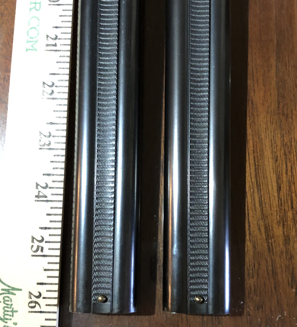 I have a 28 gauge two barrel set where both sets of barrels are 26”, one set IC/Mod and the other Mod/Full. I assume that the Mod/Full set must be uncommon. Perhaps it was a special order.