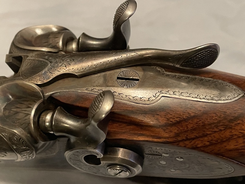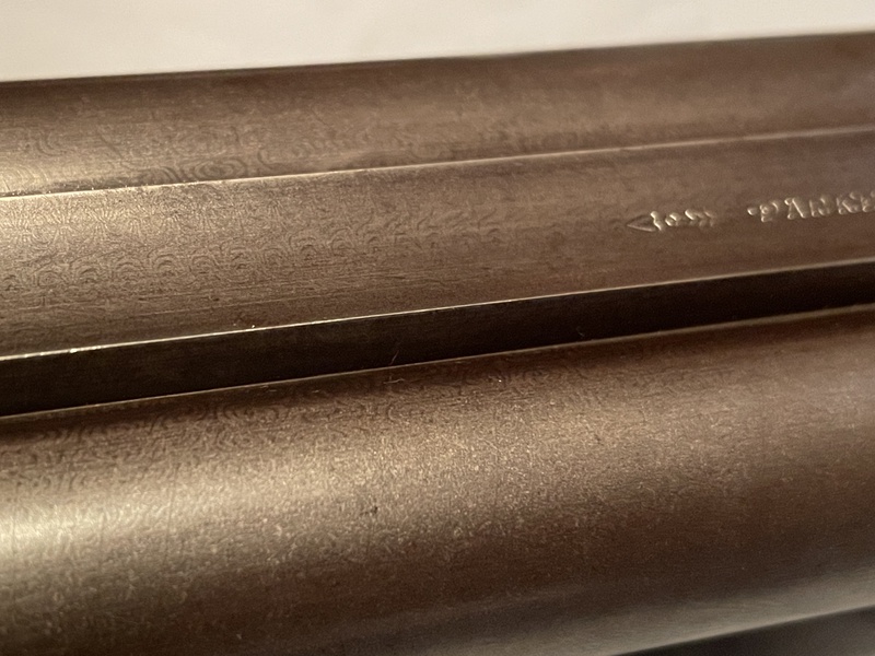 Very nice, but why no damascus pattern shows. I would expect some nice pattern in the protected area of the barrel flats. It almost looks like it was cleaned at some point or blued and cleaned? Very strange
