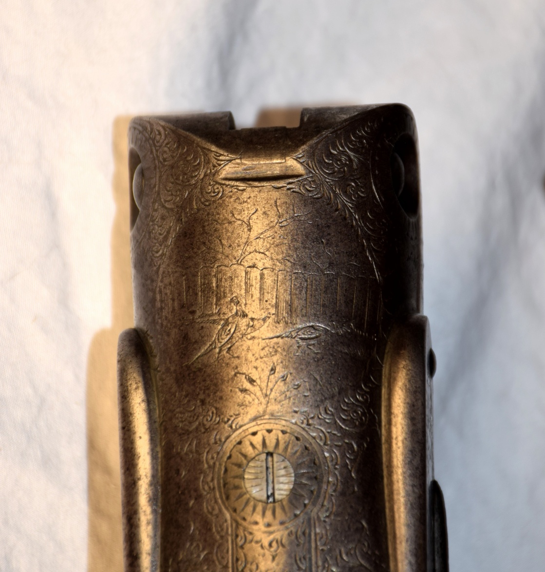 Indeed!! So I guess it's a common motif? Do you know if it shows up on later hammer guns? This is my first hammer gun beyond a G grade, and I've not seen too many Grade 3 engraving patterns (at least the bottom of the frames). I'm curious about this sort of domestic scene...