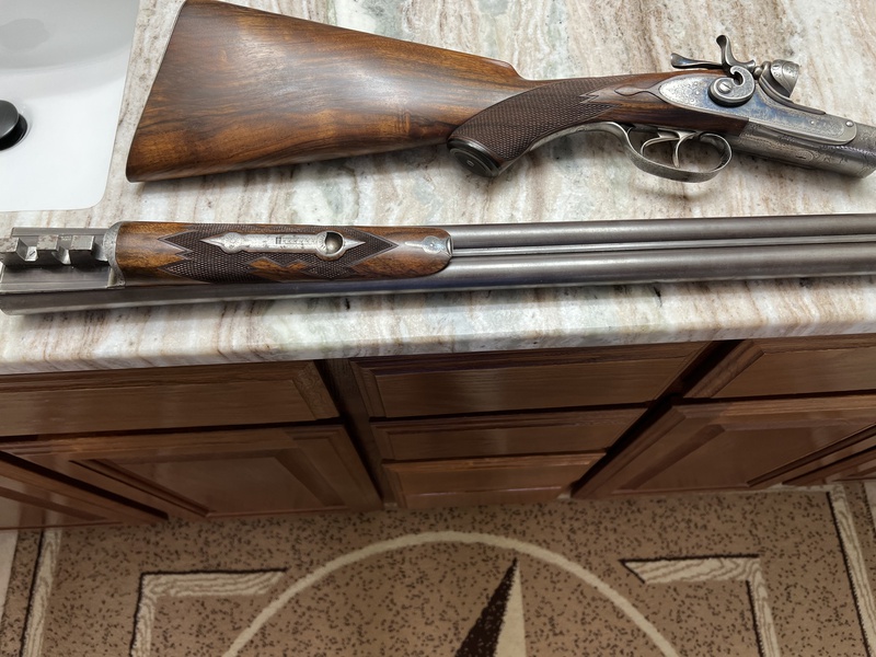 Very nice, but why no damascus pattern shows. I would expect some nice pattern in the protected area of the barrel flats. It almost looks like it was cleaned at some point or blued and cleaned? Very strange