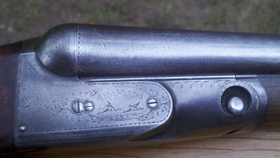 Notations in the Order Books regarding patterns are usually mostly verbal (e.g., "RB pattern 'open'; LB 'close' or 'extra tight." One such very memorable notation for a late 8 ga. steel barreled gun read, "Both barrels extra close for buckshot for deer, bear and wolves." The Stock Books contain detailed patterning information for each gun, including the size and weight of shot, in some cases the brand of the shot and powder used(e.g., Tatham, E.C.), and the number of pellets in a circle of given diameter at a given range (not always 30" @ 40 yds.). The number of pellets striking within the circle is noted as a fraction of the original total shot charge, such as 186/230. Percentage patterns are thus quickly and easily converted from these figures, and of course were always specified with crucial interest by trap and pigeon shooters when ordering a gun.