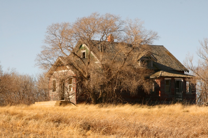 Next door to some abandoned houses you find nice modern homes. The abandoned structures are from the '20s to '40s. Some definitely went under. Others took over that land and added to theirs, which saw them abandon a house to build a better place. Youngsters headed to cities. Viable family farms got larger and larger. In the early days a quarter section was a big job for a family. While hunting an area, I have watched a quarter section of grain gobbled up by a group of combines and spewed into waiting semis in just a few hours. Equipment kept getting better and bigger, which also reduced the number of humans needed to farm the land. So, yes there was some despair but also some tremendous success stories. I have hunted on "family grain farms" that are 10 sections of land. However, I agree the abandoned structures can evoke a feeling of emptiness, despair and "broken dreams". When I gaze upon them, I think of the kids running around and playing and "doing chores" learning responsibility and self-reliance. I think about the warmth of the wood stove and the smells of bread, pies and fresh venison prepared for a winter's meal. And then the camera shutter clicks. There is no doubt that those who broke this land were hardy folk.