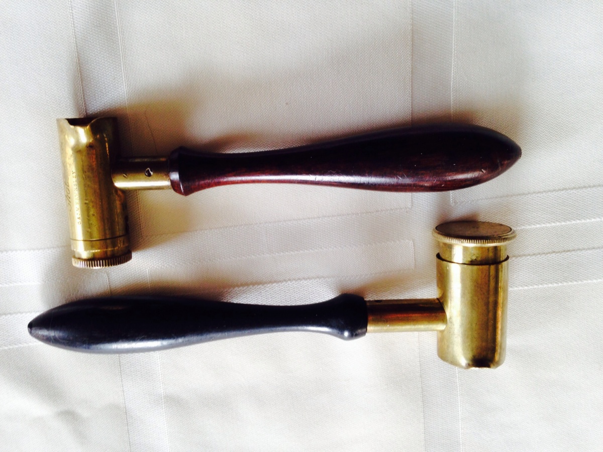 found a couple nice rosewood handled, solid brass measures yesterday - one marked "POWDER" and DR for drams with settings 3 to 5 in halfs - the other marked "SHOT" and has settings from 3/4 to 1 1/4 oz -