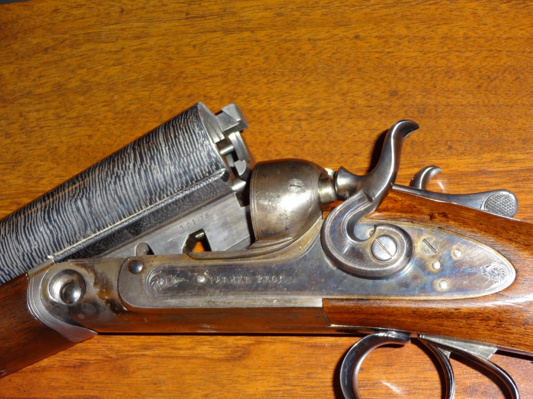 In your 4th picture, I'm seeing something I have not previously seen in a grade 2 hammer. Could you take a close up of that hammer, maybe even both hammers. I am generally on the side of not restoring a gun, when original condition is acceptable wear, and not abuse. I don't know if you are a shooter, but I am and have a variety of pieces to take out. I have a grade 2 16 that was reasonably well restored before I bought it, and I think it's one reason why I take it out often and enjoy the heck out of shooting it. The monetary value of a 30" 2 frame 12 is not a huge amount, so the argument that it's value is diminished by restoration is marginal at best. There is little argument that the cost of the restoration will not be recovered if you sold it, but since you are unlikely to sell a family gun, that, too is moot. If I were in your situation I think I would get the gun back on face and into a shooting condition. Try it out at some sporting clays, or trap, and then decide. If you do decide to go further, seek out the advice of hammer gun people. There are well know gunsmiths out there whose case color restoration is just plain wrong on these guns, and a few who have a good handle on what it should look like. There are a few good, and relatively affordable gunsmith's who can get your gun back to looking like the pictures Mark has posted of his. There are a variety of good smokeless loads which are safe, and adequate for hunting or clay busting. Barrels used on a grade 2 are very sound and, providing they are checked for this, are every bit as safe as steel barrels, providing you don't use excessively potent loads. Anything in the 1200 FPS range is fine. |
