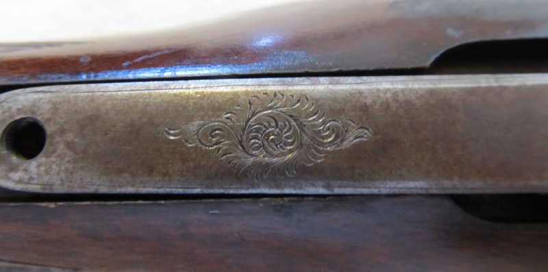 In my opinion there are longitudinal lines visible on both the top of the tang and on the underside of the tang indicating the safety slot was welded up and scroll-engraved.