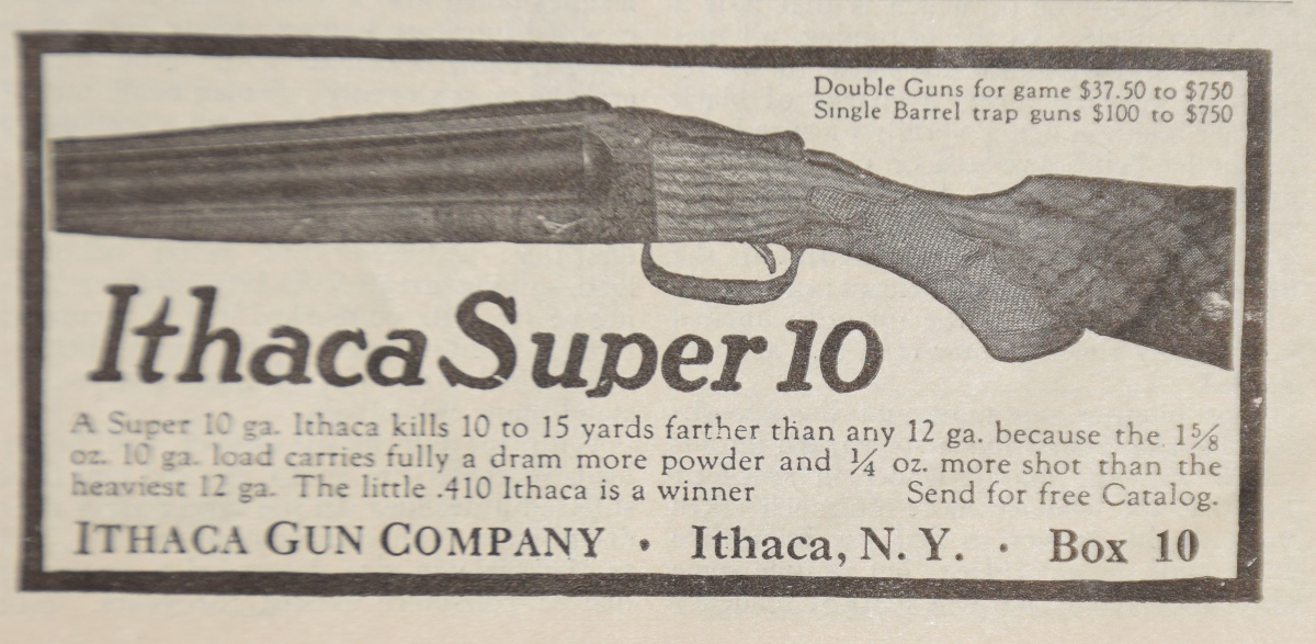 I commented before that the proof reader must have been asleep to make about a comment on "The little .410 Ithaca is a winner" when the ad was for the Super 10. Out of place I think.