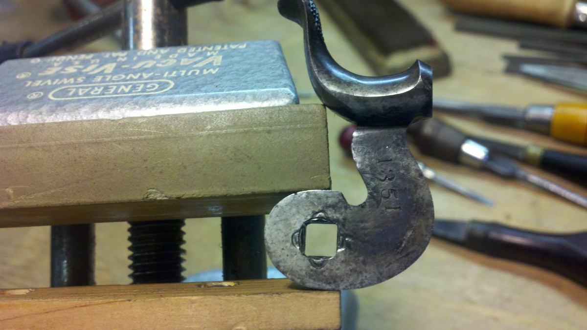 Thanks Brian, you're always a great source of information. It looked as though the locks are identical except for a round bottom on the tumbler which is in turn forced back when the sear comes in contact with it. I'll post some pics later. On another note, the locks from the 2xxx series gun were embellished at bit more than mine. Interesting and beautiful swirls (I'll try to post pics later). The action seems to be from the same $grade as my gun though. I would have simply traded lock for lock since the others were prettier than mine anyway with more color remaining. Alas, they needed some work to fit properly and wouldn't you know it, I don't have an annealing oven. Regardless, 1351 is beautiful in my eyes and will hopefully be a looker once again some day.