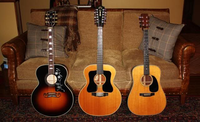 Phil, raining like crazy here just thought I would get my guitars out for a photo, do not mean to hijack your thread, the guitar on the left Yamaha FG75, center Les paul Gibson, right dads 1920 Gibson, Gary