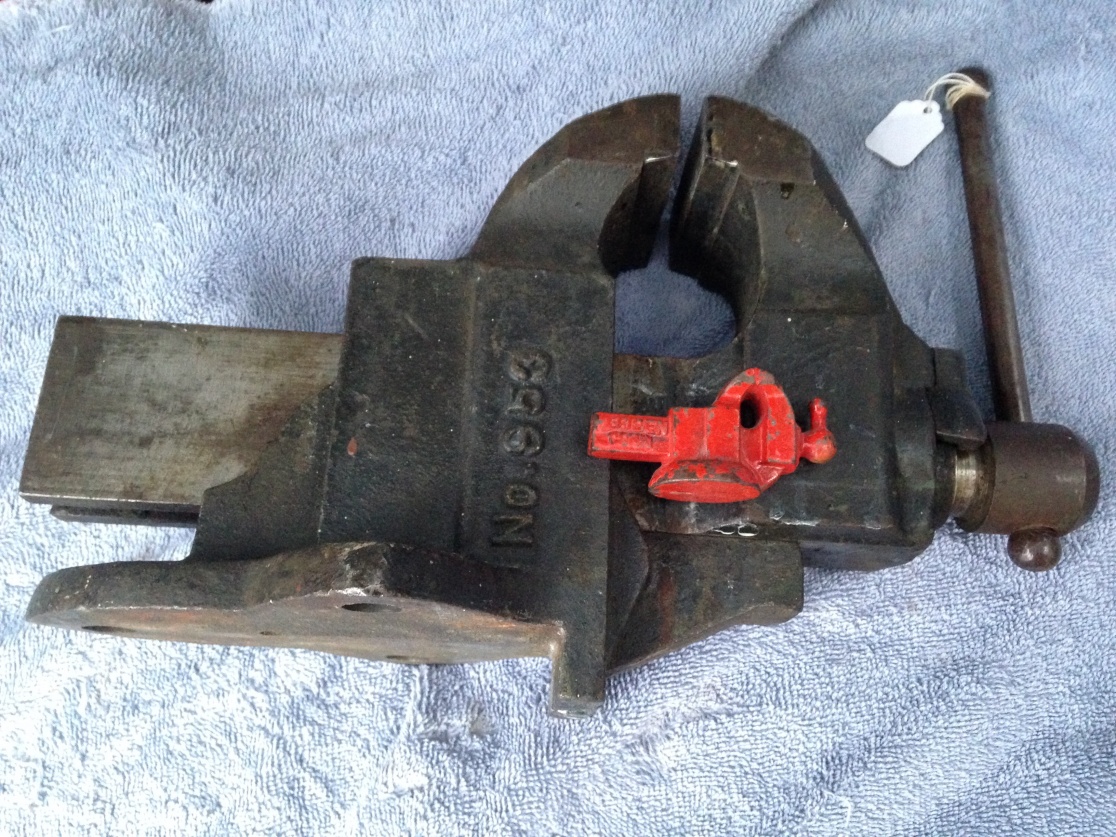 so- since i have been watching for one- I walked down his row of vises (might go back for the nice original vera vice) but for today - it was this #953 Parker vise with 3" jaws, in great condition at a reasonable price